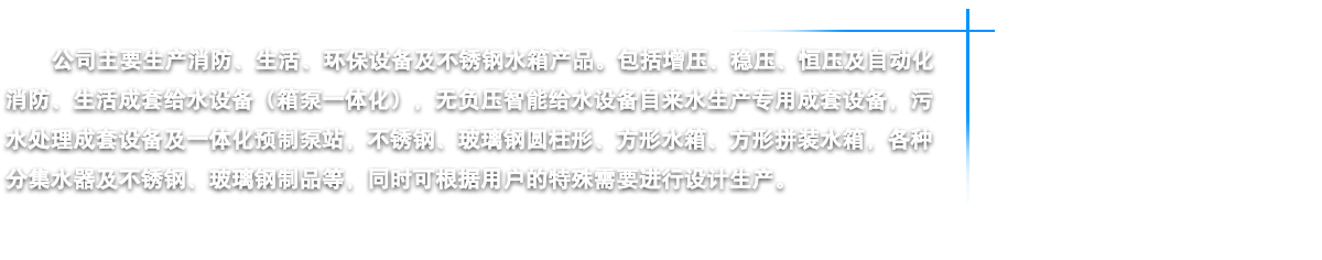 江蘇燁達環(huán)保設備有限公司坐落在江蘇省鹽城市建湖縣城,東臨黃海之濱,背倚蘇北平原,處于長三角經(jīng)濟一體化和江蘇沿海開發(fā)兩個國家級戰(zhàn)略疊加區(qū)域內(nèi),素有“水鄉(xiāng)明珠”美稱。我公司鑒定走“產(chǎn)、學、研”相結合的路子,是江蘇省供水設備行業(yè)的大型企業(yè)。公司以“一流的管理,一流的研發(fā)設計,一流的質量意識,一流的售后服務”為宗旨,嚴格控制原材料質素,講求“品質是企業(yè)的生命力”的理念,嚴把質量關,從而為客戶提供優(yōu)質的供水設備。公司主要生產(chǎn)消防、生活、環(huán)保設備及不銹鋼水箱四大類產(chǎn)品。包括增壓、穩(wěn)壓、恒壓及自動化消防、生活成套給水設備(箱泵一體化),無負壓智能給水設備自來水生產(chǎn)專用成套設備,污水處理成套設備及一體化預制泵站,不銹鋼、玻璃鋼圓柱形、方形水箱、方形拼裝水箱,各種分集水器及不銹鋼、玻璃鋼制品等,同時公司可根據(jù)用戶的特殊需要進行設計生產(chǎn)。燁達人將以科學的管理、精湛的技術、可靠的質量、優(yōu)良的品質向社會各界服務,我們始終坦誠相見,我們當然走在最前面······ |